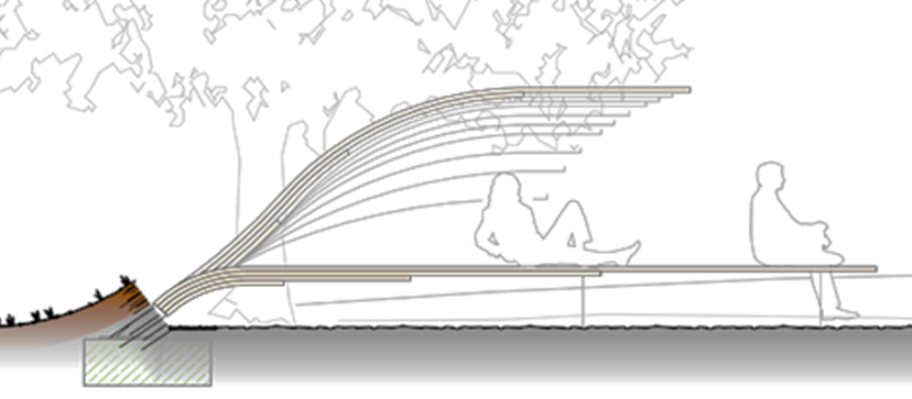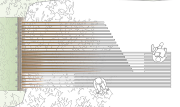 Our concept for the North Downs Way uses natural materials to create a sculpture that blends seamlessly into the landscape while offering inspiring views and contemplative spaces. The design features a rammed earth base, layered to reflect time and history, which also serves as a bench and resting place for visitors to sit, relax, and reflect. Rising from this foundation are curved spines of locally sourced timber that weather to a silver tone, creating an ethereal effect. Subtle from a distance yet powerful up close, the sculpture frames Canterbury Cathedral, referencing pilgrims’ journeys and encouraging personal contemplation. Materials will be sourced locally, and the community will be involved in the eco-friendly rammed earth construction, fostering pride and ownership while enhancing the trail with sustainable, functional art that combines beauty, history, and purpose.